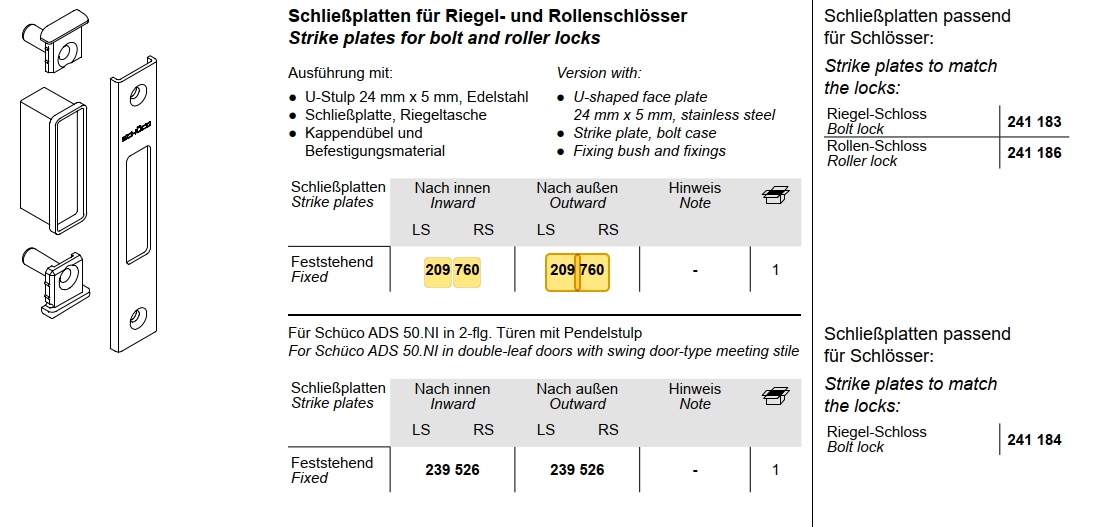 Schüco Schließplatten für Riegel- und Rollenschlösser, 209 760, ADS HD