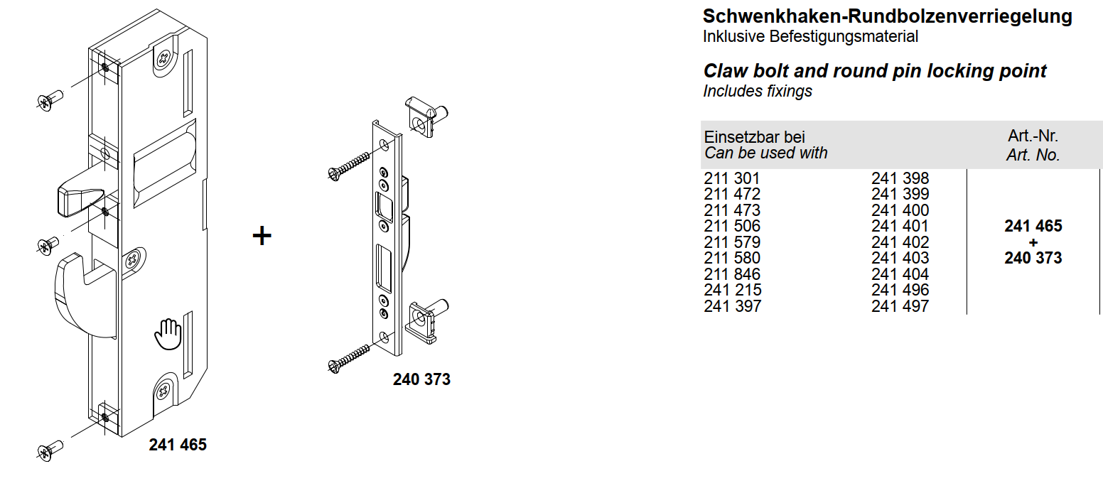 - Ersatzteil: Schüco Hauptschlosskasten Schwenkriegel-Bolzenschloss, 241464 für Mehrfachverriegelung, 241215: