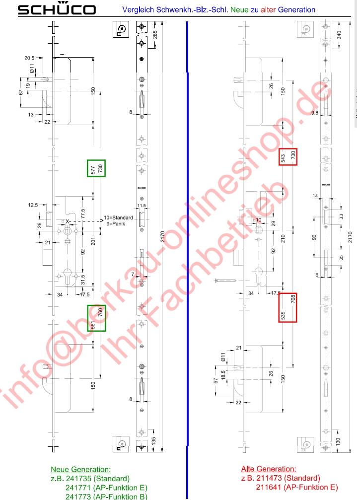 Schüco, Schwenkriegel-Bolzenschloss, Mehrfachverriegelung, 241735, Dornmaß 34,0 mm