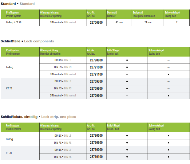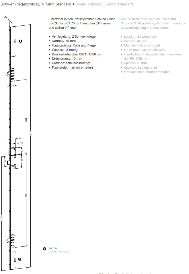 Schüco Schwenkriegelschloss, 3-Punkt Standard, 28706800