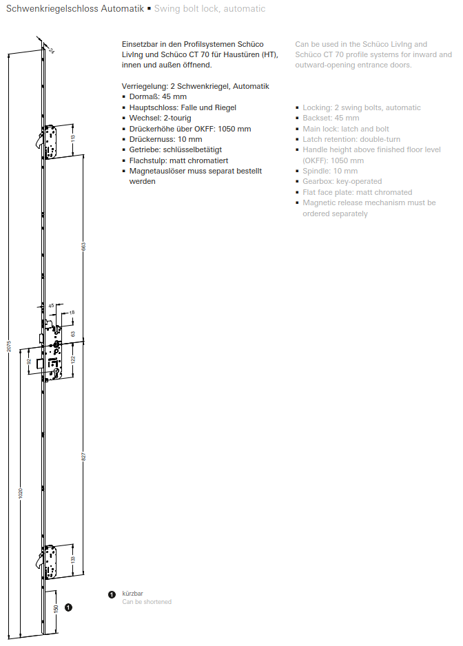 Schüco Haustür-Automatik-Schloss 2SR 24/45, 28772900, DIN RS
