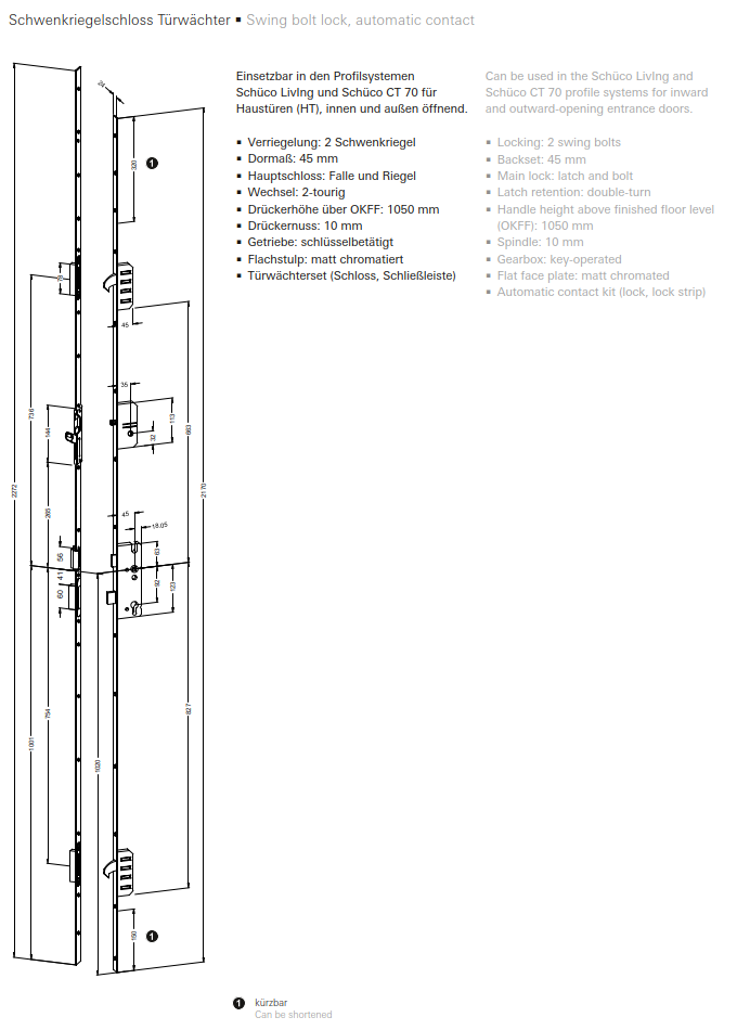 Schüco Schwenkriegelschloss Türwächter, 28708700, DIN RS