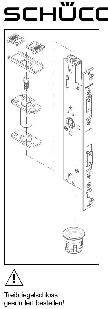 Schüco Treibriegelschloss mit E-Öffner, ADS Antipanik-Einfachverriegelungen, 241 995, nach außen, LS