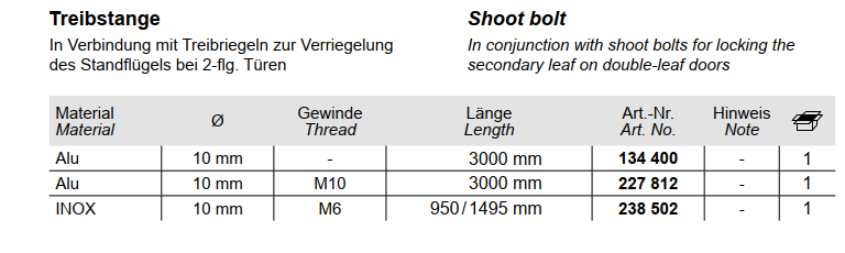 Schüco Treibstange,134 400, ADS 65.NI Zubehör