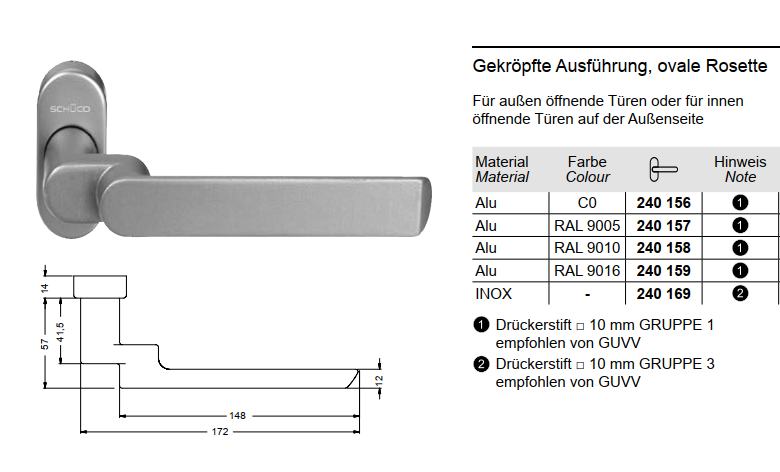 Schüco Türdrücker RAL 9005 (Tiefschwarz) | 240157 Gekröpft