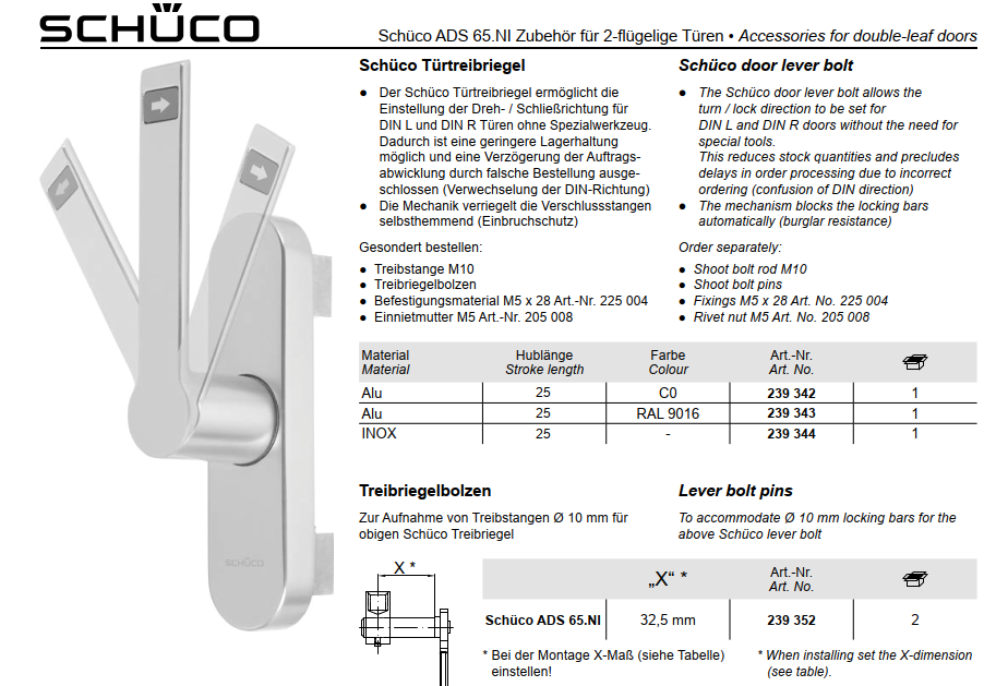 Schüco Türtreibriegel, Alu, Farbe CO, 239 342, ADS 65.NI Zubehör