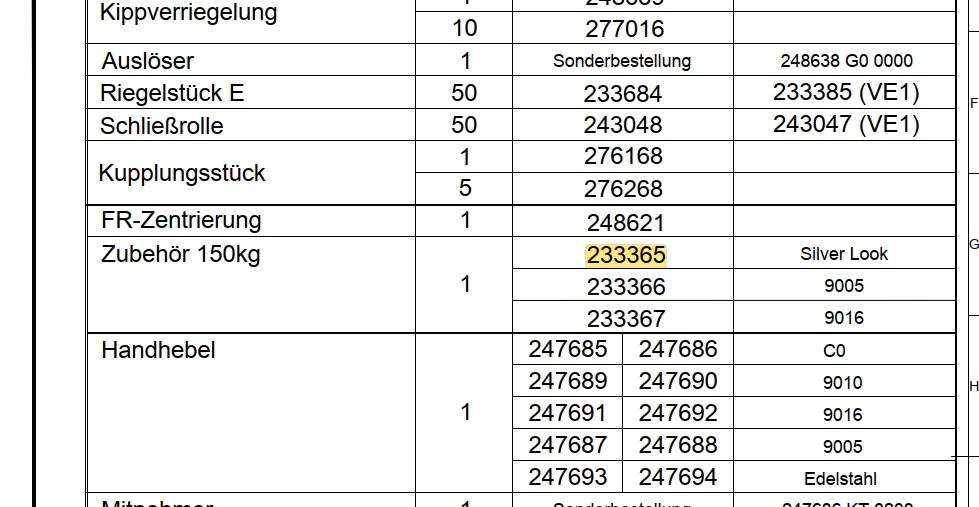 Schüco Zubehör MZ150 Silba, 233365, für PASK