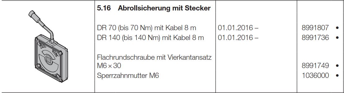Hörmann Abrollsicherung mit Stecker DR 70 (bis 70 Nm) HG 75 TD