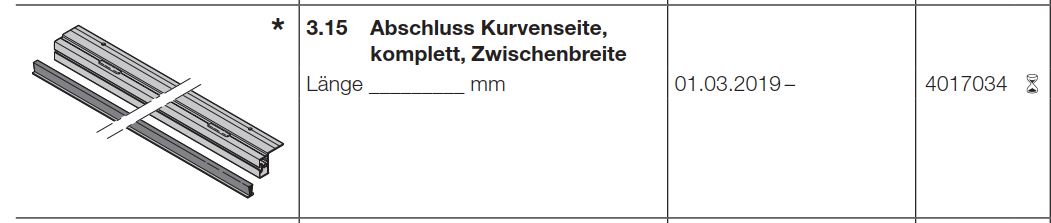 Hörmann Abschluss Kurvenseite, komplett, Zwischenbreite, Seiten-Sektionaltor