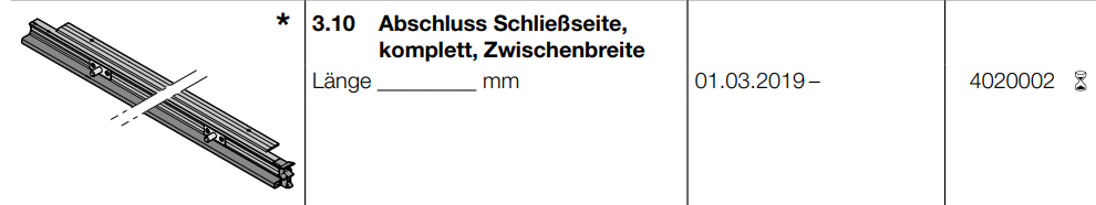 Hörmann Abschluss Schließseite, komplett, Zwischenbreite, komplett, 4020002, per Meter für Seiten-Sektionaltor, BR 30