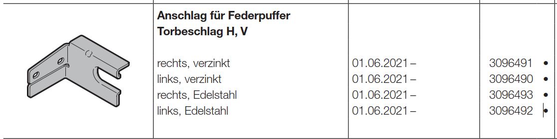 Hörmann Anschlag für Federpuffer links, verzinkt Baureihe 60