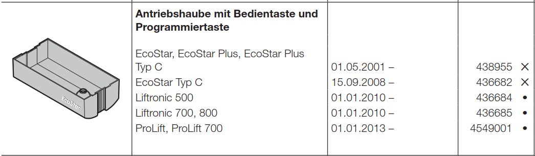 Hörmann Antriebshaube mit Bedientaste und Programmiertaste, Liftronic 700, 800