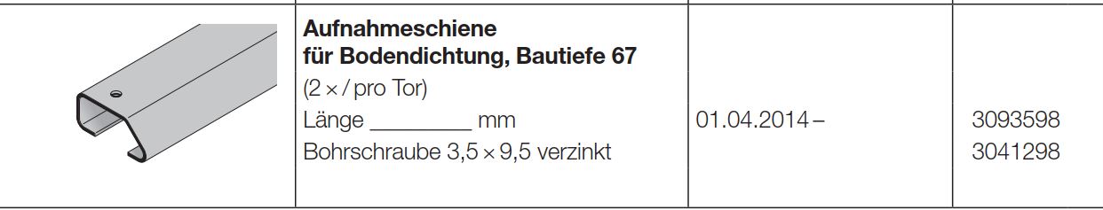 Hörmann Aufnahmeschiene für Bodendichtung Bautiefe 67 der Baureihe 50