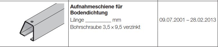 Hörmann Aufnahmeschiene für Bodendichtung für Torglieder EcoStar RenoMatic light
