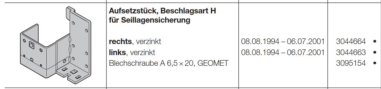 Hörmann Aufsetzstück Beschlagsart H für Seillagensicherung für die Industrietore der Baureihe 30 rechts