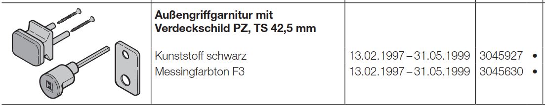 Hörmann Außengriffgarnitur mit Verdeckschild PZ, TS 42,5 mm, Messingfarbton F 3, Baureihe 30 (Privat-Tor)