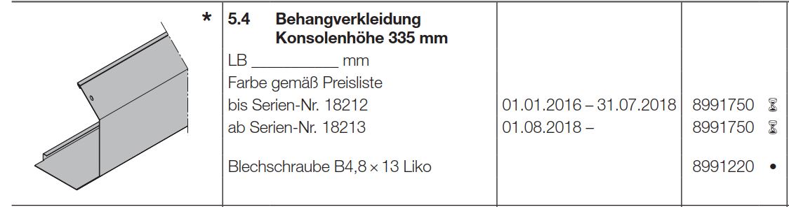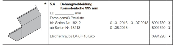 Hörmann Behangverkleidung Konsolenhöhe 335 mm HG 75 TD