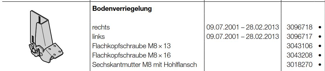 Hörmann Bodenverrieglung links für die Industrietor der Baureihe 40,50