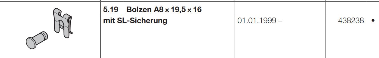 Hörmann Bolzen A8 × 19,5 × 16, mit SL-Sicherung