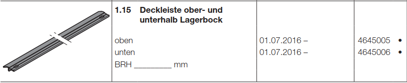 Hörmann Deckleiste ober- und unterhalb Lagerbock oben, Doppelgaragen-Schwingtor N 500