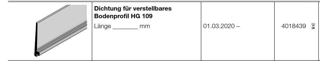 Hörmann Dichtung für verstellbares Bodenprofil HG 109 Baureihe 40 (Privat Tor)