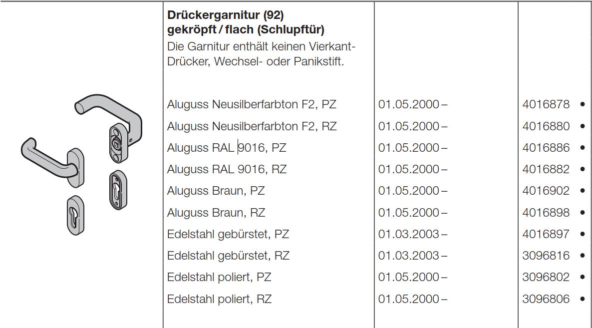 Hörmann Drückergarnitur (92) gekröpft / flach (Schlupftür) Baureihe 40 (Privattor)
