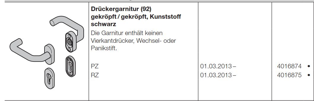 Hörmann Drückergarnitur 92 gekröpft-gekröpft Kunststoff schwarz Rundzylinder, Baureihe 30-40-50-60