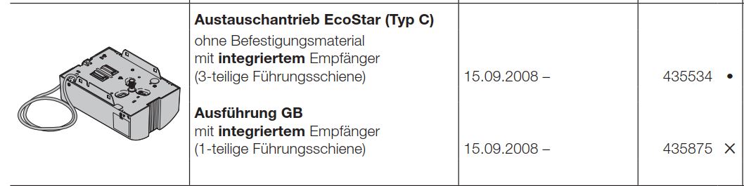 Hörmann EcoStar (Typ C) Austauschantrieb ohne Befestigungsmaterial mit integriertem Empfänger für (3-teilige Führungsschiene)