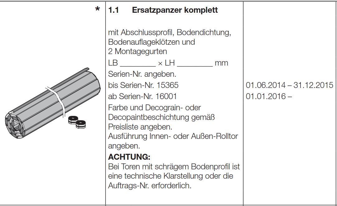Hörmann Ersatzpanzer komplett Innen-Rolltor RollMatic