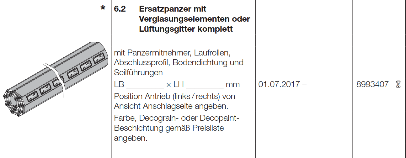 Hörmann Ersatzpanzer mit Verglasungselementen oder Lüftungsgitter