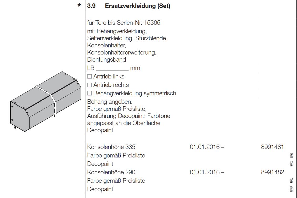 Hörmann Ersatzverkleidung (Set) Konsolenhöhe 290 Außen-Rolltor und Rollgitter RollMatic kraftbetätigt