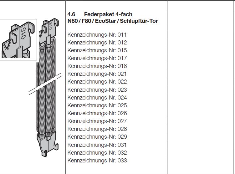 Hörmann Federpaket, 4-fach Kennzeichnungsnummer 015, N80 / F80 / EcoStar / Schlupftürtor
