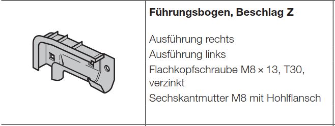 Hörmann Führungsbogen Beschlag L, Z, BL, BZ, links Baureihe 30, 40 (Privat Tore)