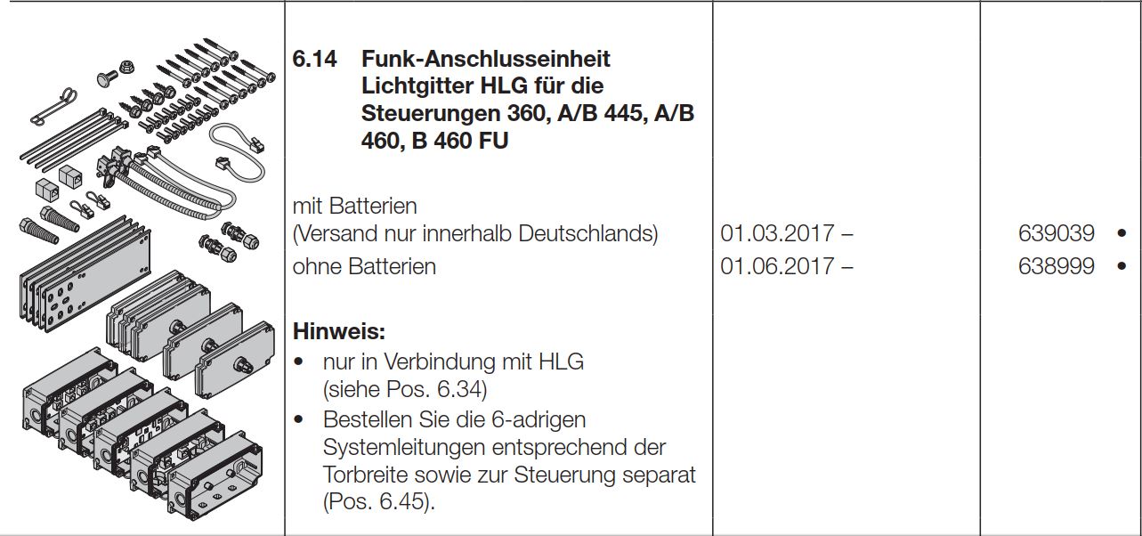 Hörmann Funk-Anschlusseinheit Lichtgitter HLG für die Steuerungen mit Batterien