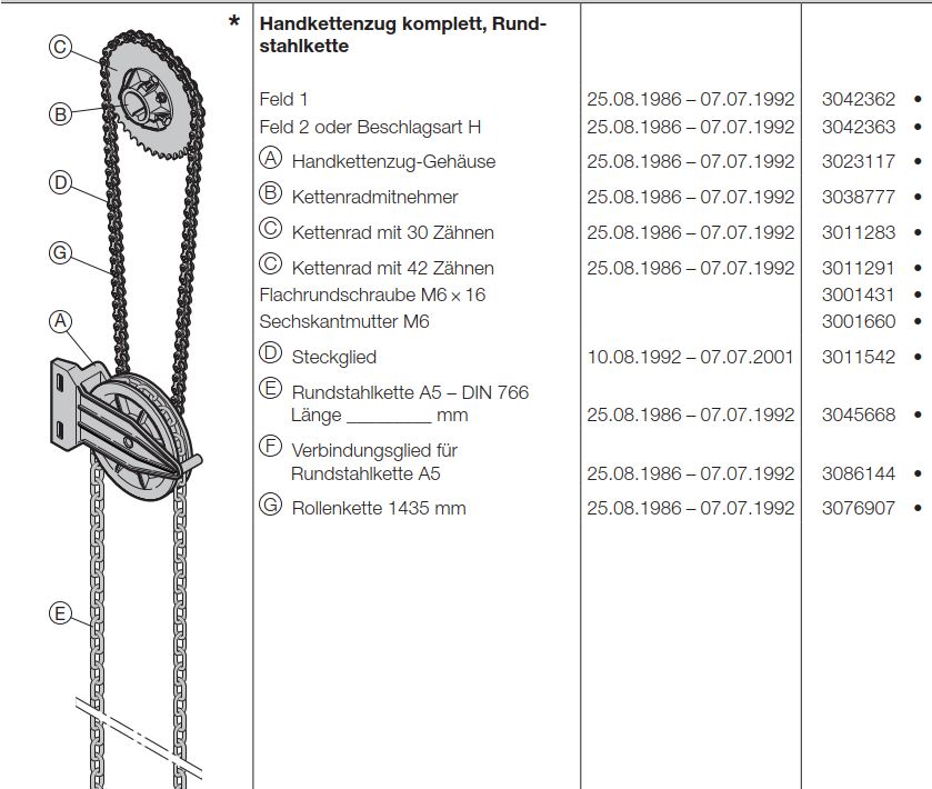 Hörmann Handkettenzug komplett-Rundstahlkette Feld 2 oder Beschlagsart H Baureihe 20, 30