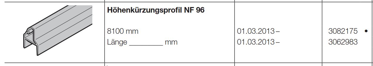 Hörmann Höhenkürzungsprofil NF 96 Zubehör für Torglieder der Baureihe 50