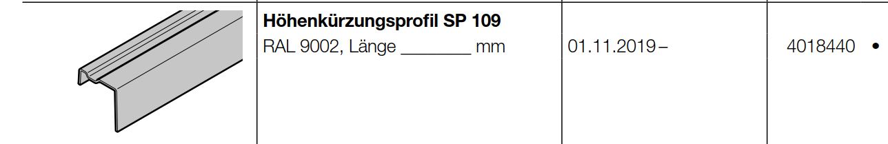 Hörmann Höhenkürzungsprofil SP 109, Meterware, der Baureihe 40 (Privattor)