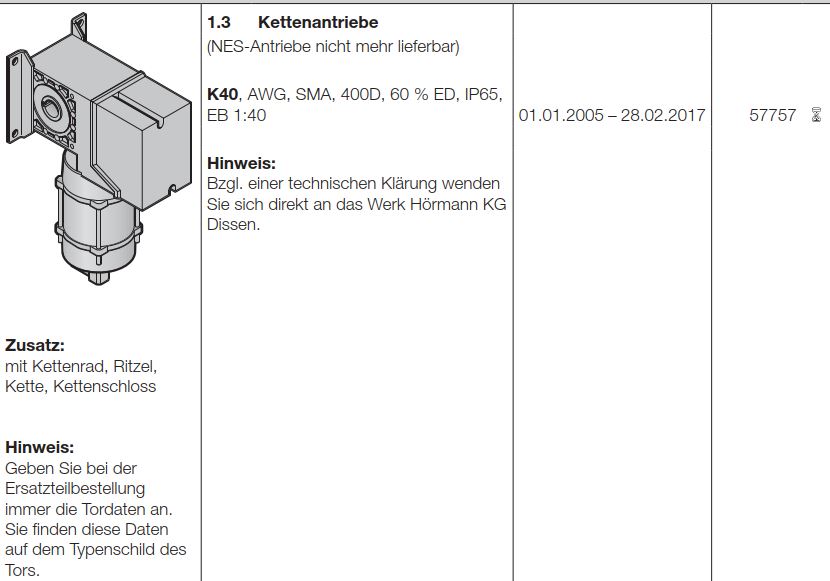 Hörmann Kettenantriebe K40-AWG-SMA-400D-60 Prozent ED-IP65-EB 1-40