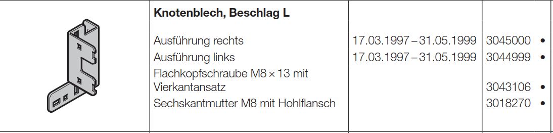 Hörmann Knotenblech, Beschlag R, rechts Baureihe 30 (Privat Tor)