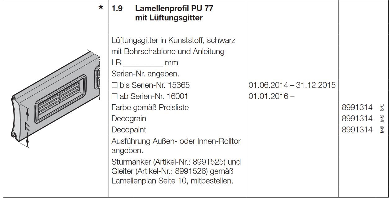 Hörmann Lamellenprofil PU 77 mit Lüftungsgitter Farbe gemäß Preisliste