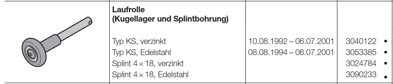 Hörmann Laufrollen Typ KS mit Kugellager Edelstahl für die Industrietore der Baureihe 30-40-50