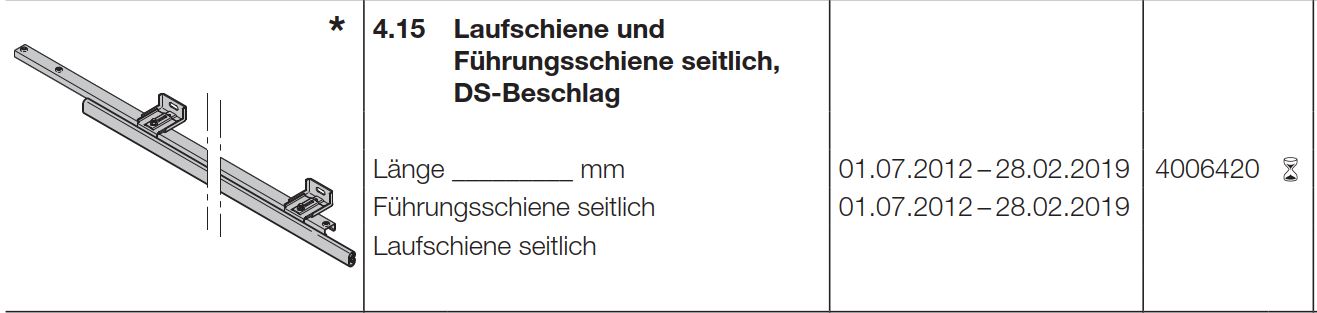 Hörmann Laufschiene und Führungsschiene seitlich, DS-Beschlag (HST 42), Seiten-Sektionaltor