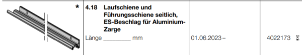 Hörmann Laufschiene und Führungsschiene seitlich, ES-Beschlag für AluminiumZarge, 4022173, (HST 42), Seiten-Sektionaltor, BR 30