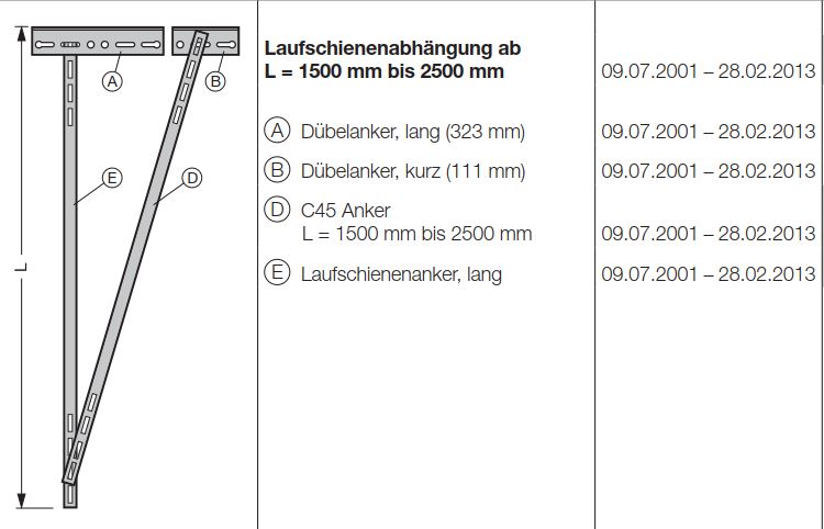 Hörmann Laufschienenabhängung ab L=1500 mm bis 2500 mm für die Industrietorbaureihe 20-30-40-50