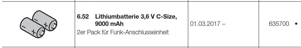 Hörmann Lithiumbatterie 3,6 V C-Size 9000 mAh