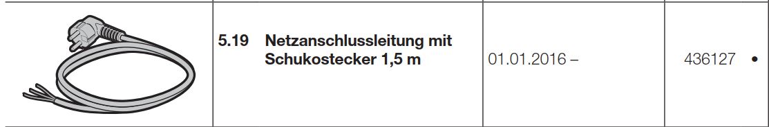 Hörmann Netzanschlussleitung mit Schukostecker 1,5 m HG 75 TD