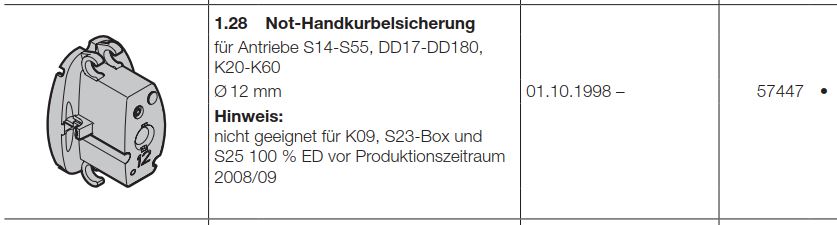 Not-Handkurbelsicherung für Steckantriebe S14-S55,