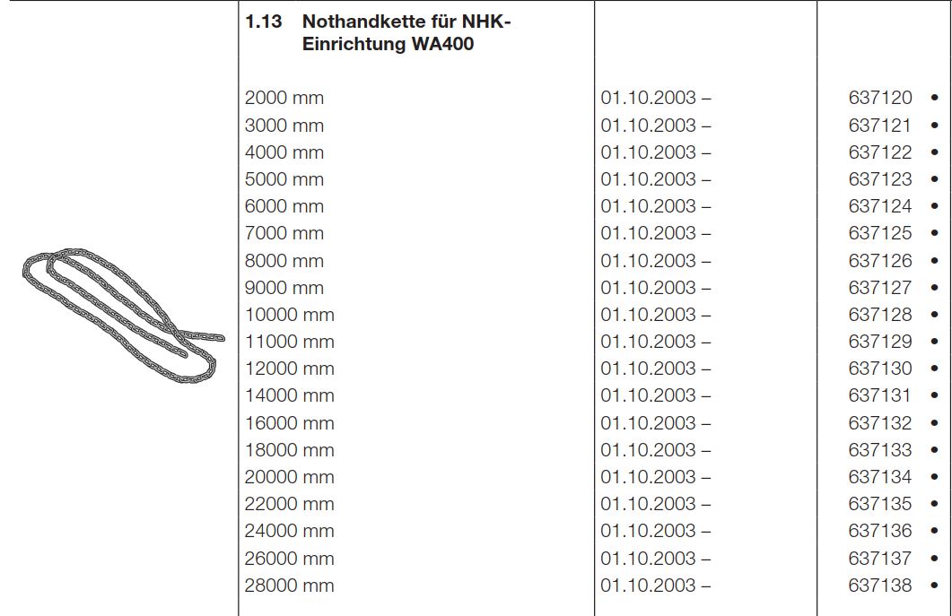 Hörmann Nothandkette für NHK- Einrichtung WA 400