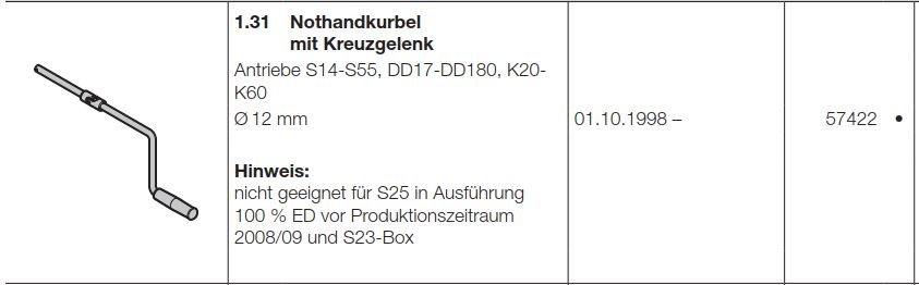 Hörmann Nothandkurbel mit Kreuzgelenk