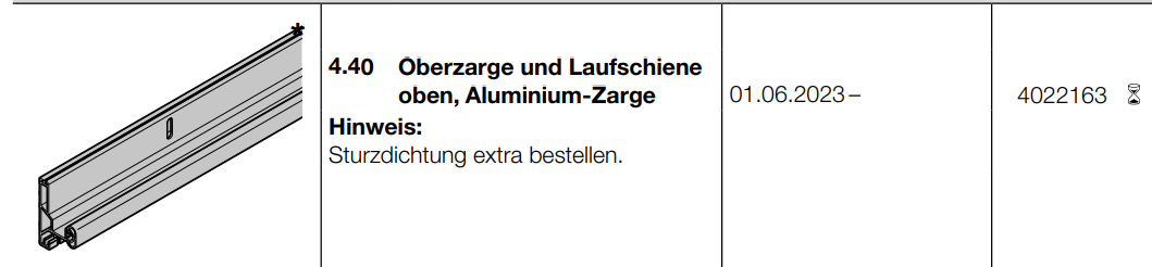 Hörmann Oberzarge und Laufschiene oben, Aluminium-Zarge, 4022163, Seiten-Sektionaltore, BR 30